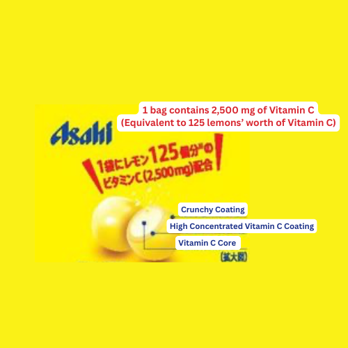 Crunchy and tangy lemon tablets containing Vitamin C equivalent to 125 lemons (2,500 mg per bag). Sugar-free and designed for a quick energy and Vitamin C boost.